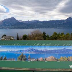 Gesagt, getan kommen wir gegen Mittag an, schwelgen im IPER Superstore und füllen den Einkaufswagen. Danach geht's weiter geht's zur Panorama Straße nach San Zeno di Montagna, von wo man einen schönen Ausblick über den Gardasee hat. Leider ist es inzwischen 7 Grad kalt 🥶, bewölkt und auch stürmt es sehr stark, sodass die Mittagspause in Dusty mit Ausblick über den See stattfindet.