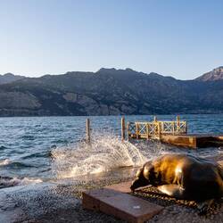 Also stehen wir gemütlich auf, frühstücken bei Sonnenschein und starten dann erstmal zu einem Bummel über den Markt und laufen dann entlang der Uferpromenade nach Val die Sogno. Bis auf ein paar Radfahrer haben wir wirklich die Promenade für uns Alleine und genießen die Aussichten in vollen Zügen. Ach was für ein schöner Tag zum Abschluss unseres Urlaubs, zumal - im Vergleich zu unserem letzten Besuch im September quasi nichts los ist.
