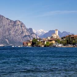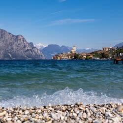Nach einem kurzen Snack um den "kleinen Hunger zu vertreiben", fahren wir weiter nach Malcesine, wo wir das erste Mal einen Platz auf einem kleinen Campingplatz (12 Plätze) mitten im Ort bekommen haben. Der Platz ist sehr schön, da etwas tiefer als die Strasse gelegen, damit sehr ruhig und direkter Blick auf die Burg - was will man mehr?