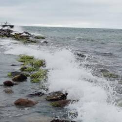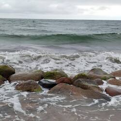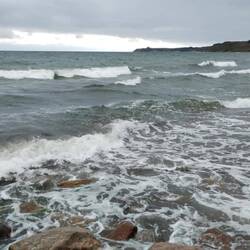 Es regnete und wir sind dann kurzerhand auf einem Stellplatz gelandet,wo nebenan ein Imbiss war. Als es später aufklarte, sind wir die Straße runter gelaufen zur Küste. Es war sehr windig , dadurchもっと詳しく