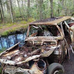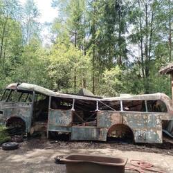 Heute Mittag sind wir zum Autofriedhof gefahren - das ist wirklich ein bizarrer und faszinierender Ort zugleich .