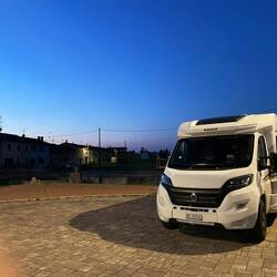 Wir hatten eine ruhige Fährfahrt von Palermo nach Genua. Wir kamen um 19:30 Uhr an und fuhren dann noch bis Levi di Montalcini. Hier gibt es von der Gemeinde einen Parkplatz wo man übernachten kann.Baca lagi