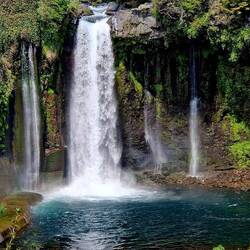 150m breit mit einem großen und mehreren kleinen Fällen die an einer Felswand herunterbrechen. Drum herum viele Ahornbäume undRead more
