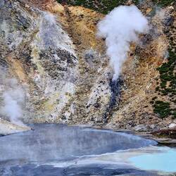 Das auch als Höllental bekannte Noboribetsu Jigokutani in Hokkaido sprudelt und dampft vor heißem Quellwasser. Noboribetsu Jigokutani ist ein vulkanischer Krater, der durch die Ausbrüche des BergsRead more