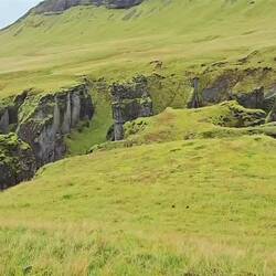 Beim Fjaðrárgljúfur-Canyon führt ein etwa 2 km Wanderweg am oberen Rand des Canyons entlang. Am Ende gelangt man zu drei Wasserfällen, die aus 100 m in die Schlucht fallen.