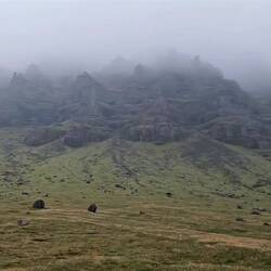 Weiter ging die Fahrt von eisigen Gletschern über in Nebel eingehüllte Berge bis zu grünen Wiesen.
