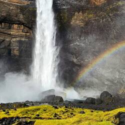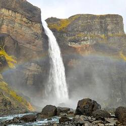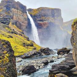 Richtung Landesinnere ging es über nun unbefestigte Straßen weiter zu unserem Ziel - dem Háifoss, übersetzt "Hoher Wasserfall", einer der größten Wasserfälle von Island mit einer Fallhöhe von 122m, der erst 1912 seinen Namen erhielt.