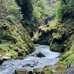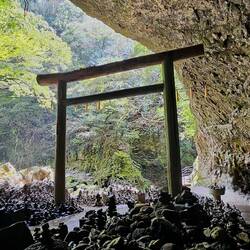 Vom Amanoiwato-jinja Schrein aus ging es am Bach entlang zu der Amano Yasugawara Cave, in welcher sich ein weiterer Schrein befindet.