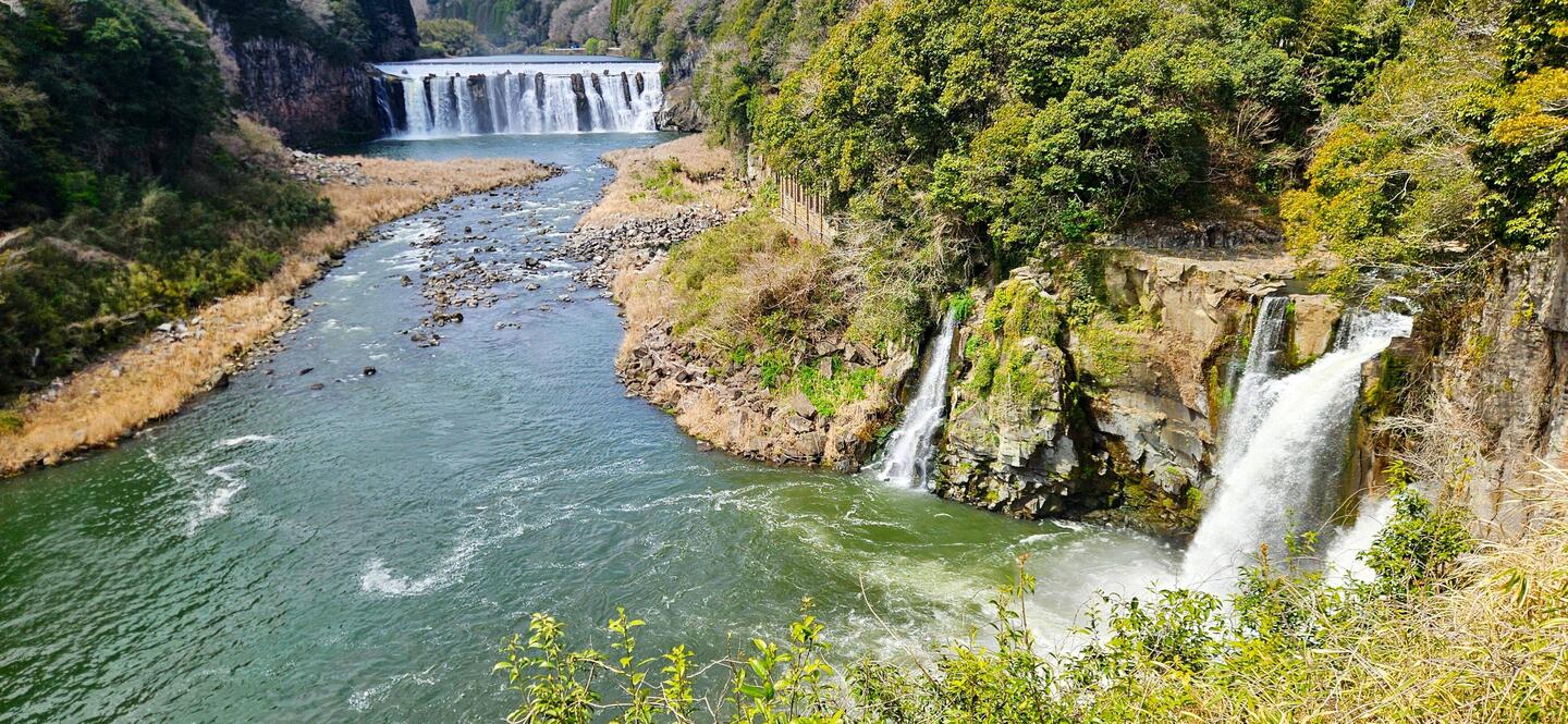Von der Straße aus sahen wir in etwas Enfernung einen Wasserfall und drehten nochmal, um ihn uns anzuschauen. Dort, wo die Flüsse Ono und Hirai zusammentreffen, befinden sich die Chinda Falls. SieLeia mais