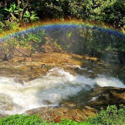 Mit etwa 250 m Höhe ist der Mae Ya Thailands größter Wasserfall, der auf ca. 30 Stufen hinabfließt. Das Wasser sah zwar nicht so einladend zum Baden aus, aber eindrucksvoll war er trotzdem.