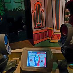 Am Ende besuchten wir den "Toy Story" Bereich. Hier galt es während der VR-Fahrt mit einem Shooter in einem Arkadespiel, besser als sein Mitspieler zu sein.