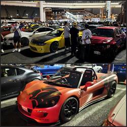 Das pulsieren der japanische Autokultur ist hier fast täglich zu spüren, zumindest bis die Hüter der Ordnung gezwungen sind den Platz zu räumen, wenn der Rückstau zu groß wird. Wir hatten daher Glück uns in dem Zeitfenster umsehen zu können.