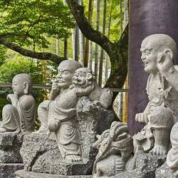 Der Shuzenji Tempel im Herzen von Izu entstand 807. Nach einer Schlacht beschädigt und im Jahre 1401 vollständig niedergebrannt, wurde er 1489 rekonstruiert. Der Zen-Meister Ryukei Hanjo zog ein und veränderte die Zugehörigkeit des Tempels, indem er ihn mit der Soto-Sekte des Buddhismus in Einklang brachte.