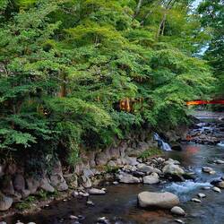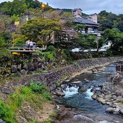 Mittig vom Katsura River entspringt seit 1400 Jahren eine heiße Quelle,die öffentlich und frei genutzt werden kann und so genossen auch wir ein heißes Fußbad, wobei das schon fast eine Spur zu heiß war.