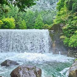 Der Nagashima Staudamm ist 109 Meter hoch und 308 Meter lang und befindet sich am Fluss Ōi in Kawanehon. Die alte Eisenbahnstrecke verläuft ebenfalls durch die grünen Berge.