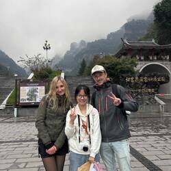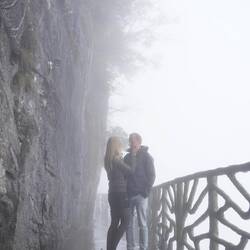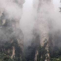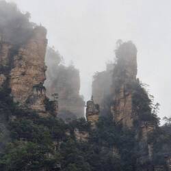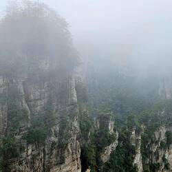 Mit Chinas längster Seilbahn fuhren wir auf den 1520 m hohen Tainmen-Berg. Dieser lag im dichten Nebel, weshalb die Seilbahnfahrt etwas weniger imposand, aber auch nervenschonender war😅