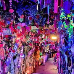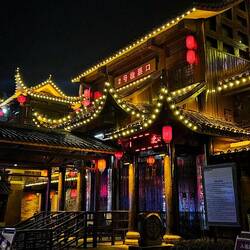 Die mit den roten Laternen leicht beleuchtete Mauer sowie dieRead more