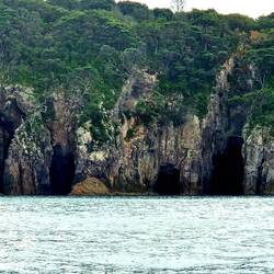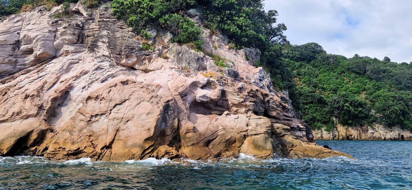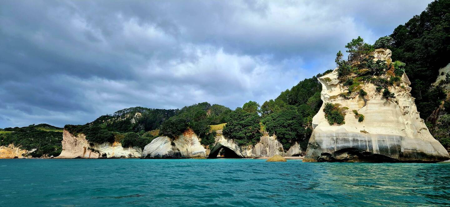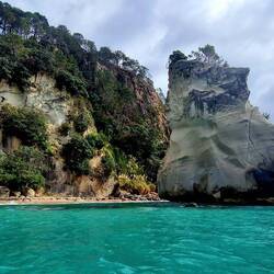 An der Küste gab es viele interessante Felsformationen. Hier an der Cathedral Cove gab es mit etwas Phantasie einen schlafenden Drachen.