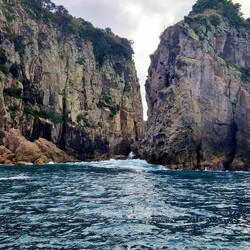 Heute wurde die Küste mit den gewaltigen Klippen und vielen Inseln erkundet. Und zwar mit Ash auf seinem Speed-Schlauchboot.