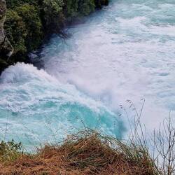 Das klare Wasser des Waikato Rivers, das eigentlich eher ruhig und breit fließt, muss sich hier durch eine schmale aus hartem Vulkangestein bestehende Schlucht quetschen, bis es als Huka Fall 11 mЧитать далее