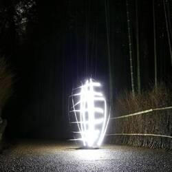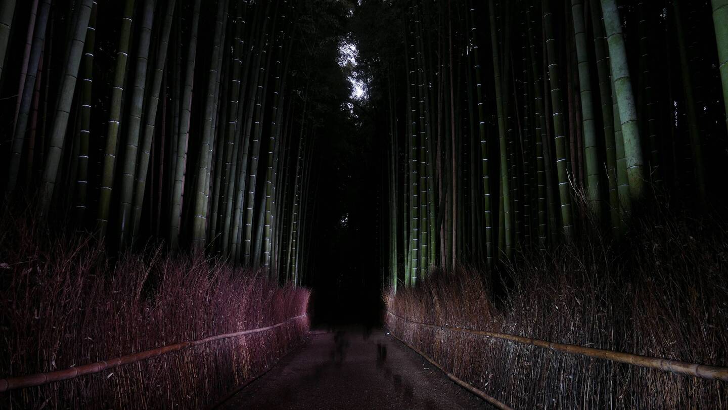 Auf dem Rückweg vom dem Aussichtspunkt ging es nochmal mit Handytaschenlampen bewaffnet durch den dunklen Bambuswald, um mit Lichteffekten Bilder zu machen.
