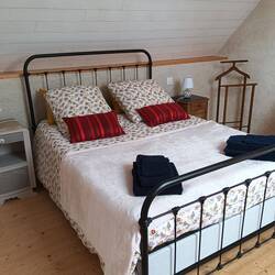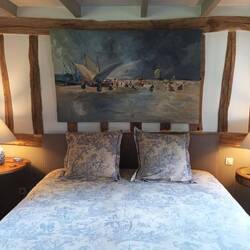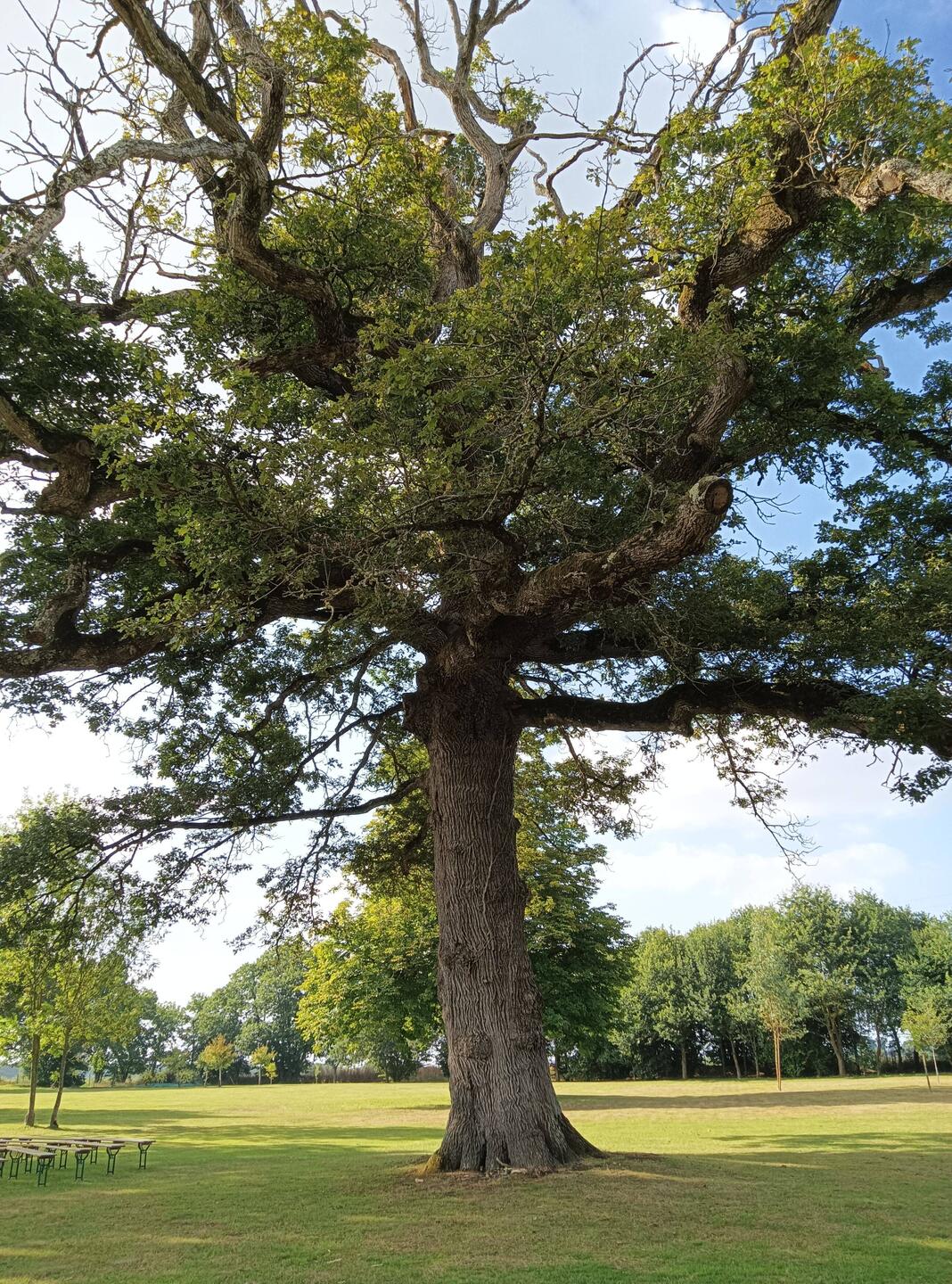 Beschwingt fahren wir am späten Vormittag über Caen und Rennes in die Bretagne weiter. Dort, auf dem Land , erwartet uns bei Montfort das Chateau du Pin, wo wir eine Nacht in einem alten Herrenhaus verbringen. Jean- Luc, der Besitzer, erzählt, dass das kleine Herrenhaus schon vor der französischen Revolution erbaut wurde. Wir nächtigen hoch oben unter dem Dach . Auf dem parkartigen Gelände stehen zwei über 340 Jahre alte Eichen .Unter denen findet morgen eine Trauung unter freiem Himmel statt - welch schönes Symbol. Neben den beiden Eichen hat der Besitzer einen großen Pavillon als Eventlocation gebaut - sicher eine gute Einnahmequelle.