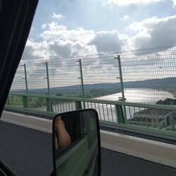 Zunächst einmal fahren wir über den Pont brotonne, eine elegante Brücke, die über die Seine führt. Unter uns glitzert der Fluss, ein Frachter fährt gemächlich in Richtung Meer.