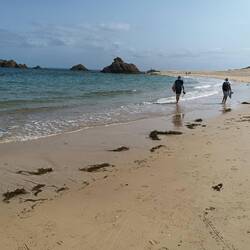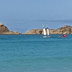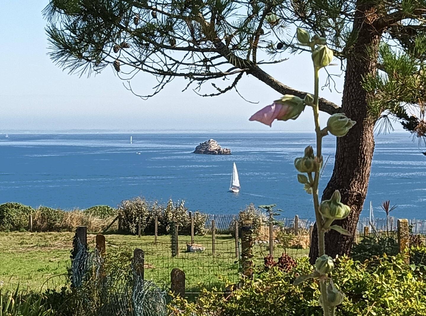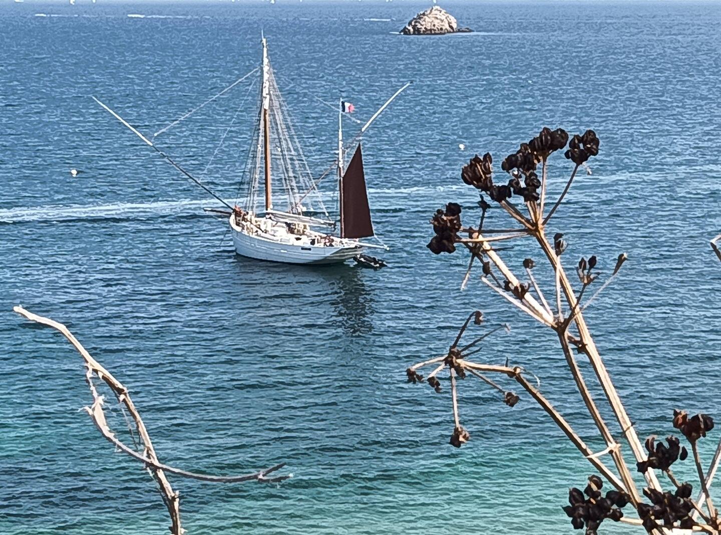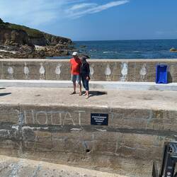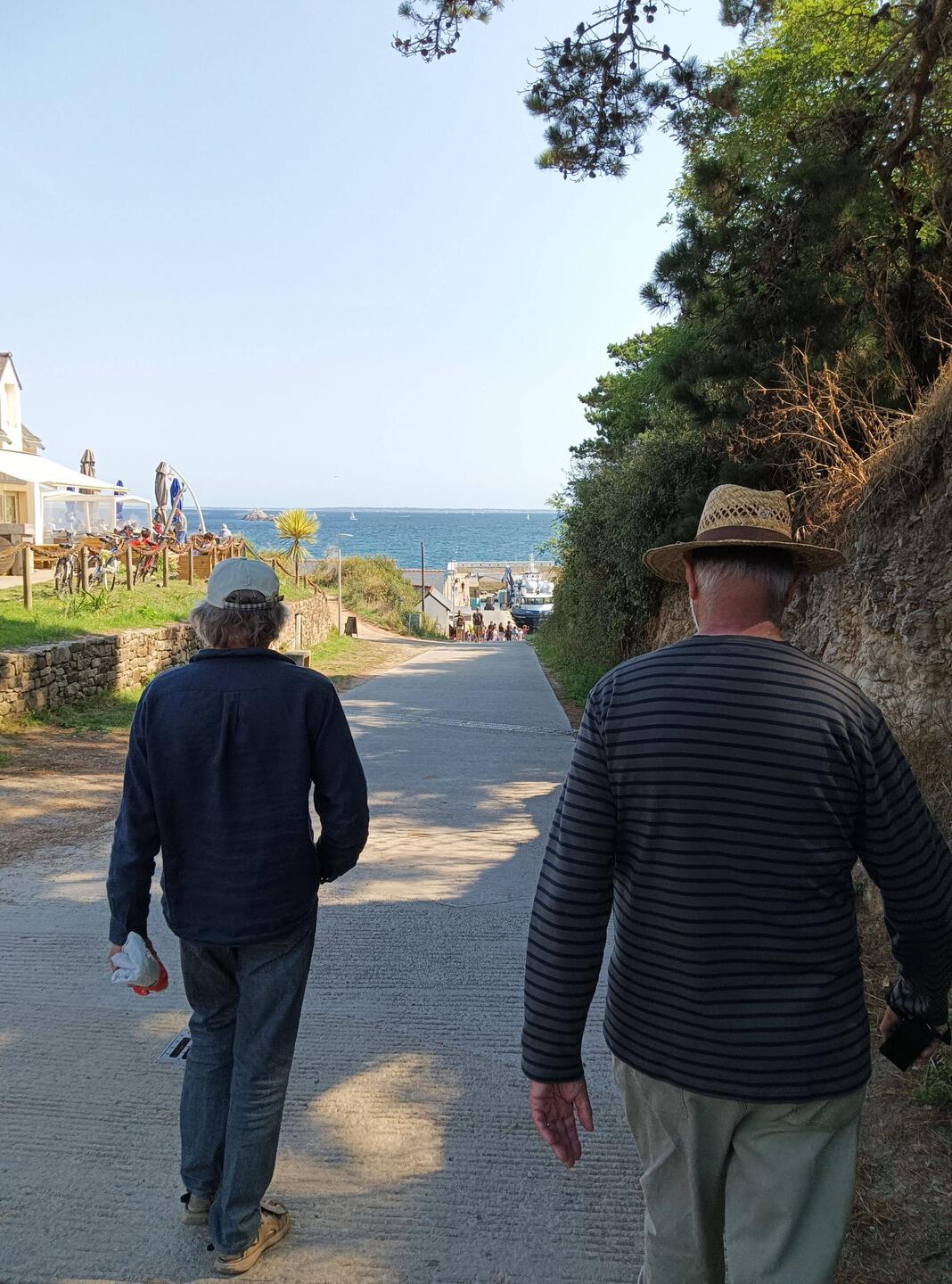 Nach einem herzlichen Abschied von unseren Vermietern in Botmeur fahren wir bei herrlichem Wetter durch das Finistère in Richtung der Halbinsel Quiberon. Von dort aus geht das Boot zur Insel Huat. Schon die Überfahrt erlebe ich sehr meditativ . Segellboote kreuzen unseren Weg, in Sichtweite liegen die Inseln Belle Ile und Hoedic. Am.Hafen von Huat erwarten uns schon unsere Freunde Marie und Dominique. Gemeinsam gehen wir durch die engen Dorfstraßen, überall blüht es: Oleander, Hortensien, Agapenthien.... Die beiden haben vor ein paar Jahren ein kleines Fischerhaus gekauft . Beim Betreten des Hauses ist Maries künstlerische Handschrift sofort sichtbar. Aus Treibholz hat sie Fisch-Skulpturen kreiert, ein Hummerkäfig dient als Tisch für die Sitzgruppe. Wir nehmen einen Kaffee auf der Terrasse mit wunderbarem Blick auf das Meer . Anschließend machen wir einen Spaziergang auf dem Küstenpfad mit Zwischenstopp am Strand " Le Salus", um Schwimmen zu gehen. Das Wasser ist kristallklar, sehr kalt und leuchtet türkis-blau, ich fühle mich in meinem Element und lasse mich von den Wellen tragen....Read more