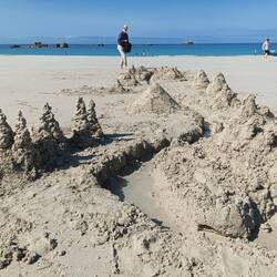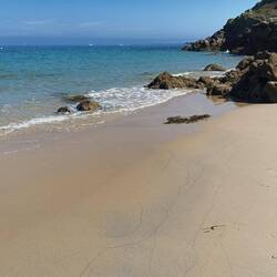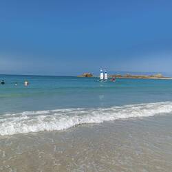 Nachmittags gehen ich mit Marie noch einmal in einer Bucht, die von Felsen umschlossen ist, schwimmen, aber die Wellen sind sehr hoch, sodass ich nicht zu weit hinaus schwimme. Marie wartet mit einem Handtuch auf mich, ihr war das Meer zu wild....