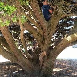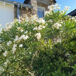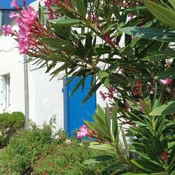 Das Schöne an einer kleinen Insel - und Huat ist eine kleine Insel - ist: Man sieht fast überall das Meer. So frühstücken wir auf der Terrasse mit Blick auf das Meer, auf dem schon im der Morgensonne die ersten Segler kreuzen. Später wandern wir einen Küstenpfad entlang, aber zuvor spazieren wir durch das kleine Dorf mit seinen weißen Häusern, oft blüht es davor. Im Ortszentrum steht eine alte Zeder mit tiefhängenden Ästen: arbre de la grimpette wird er genannt , erklärt mir Dominique und oft wird er von Familien mit Kindern als Treffpunkt vereinbart. Jetzt sitzt auch ein Junge im Baum. Er nennt den Baum " Bourse des enfants " , sagt er uns.