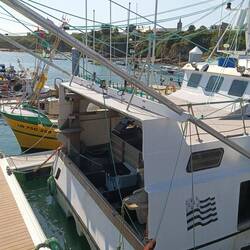 Es ist auf Huat nicht möglich, aus der Haustür zu treten und nicht sofort im Gespräch mit Nachbarn zu sein. In so einem kleinen Dorf kennt jeder jeden und unsere Freunde sind dort gut vernetzt. So weiß Dominique schon am Morgen , dass im Hafen ein Fischerboot ankommt, das frisch gefangenen Thunfisch zum Verkauf anbietet. Also machen wir uns zu dritt auf den Weg zum Hafen. " Le port, c' est monde des hommes" , sagt Marie, bevor wir losziehen ....und so ist es: Männer steuern mit den Booten den Hafen an, sie bringen die Kisten mit dem frischen Fang an Land, zerteilen die Fische und verkaufen sie. Frederics Boot hat Thunfisch an Bord und in ein paar Tagen brechen sie mit der Gwen Ar Du in Richtung Norwegen auf, erklärt mir der Vater von Frederic, der inzwischen in Rente ist, aber noch immer mitmischt . Der Thunfisch glänzt silbern un der Sonne und sieht aus wie ein Torpedo. Auf dem Rückweg treffen wir auf Patrick , einen anderen Fischer und Nachbarn von unseren Freunden. Er schüttet gerade das Wasser aus einem Topf, in dem er einen großen Krebs gekocht hat,i n den Gulli aus. Nach dem Mittagessen will er rüberkommen und beim Zerteilen den Thunfischs helfen, dafür leihen ihm unsere Freunde ihre Gartengeräte. Das Dorf lebt vom gegenseitigen Nehmen und Geben.