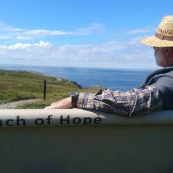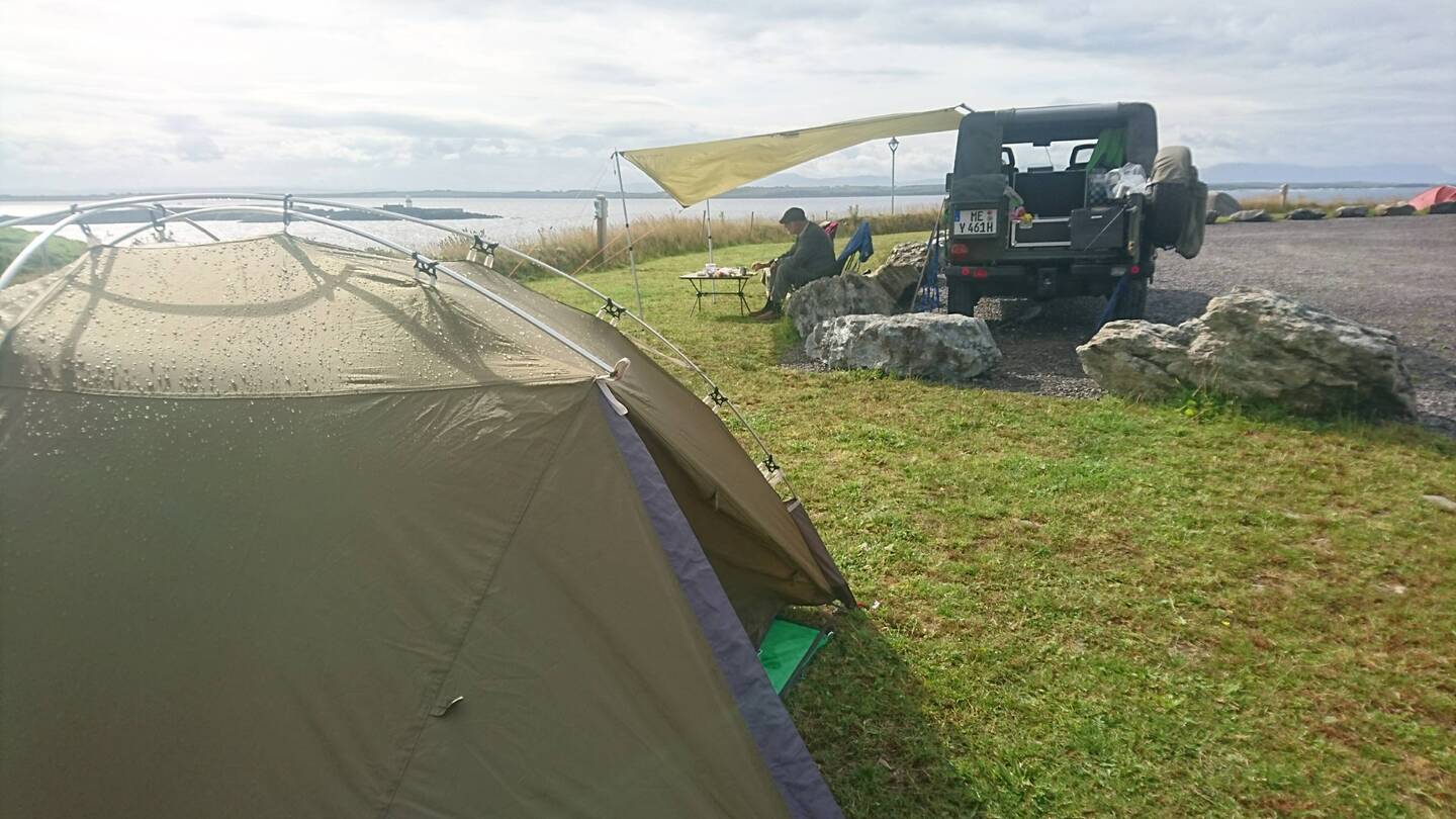 Nach einem Motorhaubenfrühstück mit einem Becher Kaffee und einer Banane brechen wir von der Watertop Farm in Richtung Donegal auf. Das Wetter ist wieder regnerisch, aber Patsy, der Farmer, meint, dass es an der Küste weiter südlich besser aussieht. Wir bleiben zuversichtich und setzen nach einer Fahrt entlang der Bergketten mit einer kleinen Fähre in die Republik Irland über. Da das Wetter inzwischen besser ist, beschließen wir die Halbinsel Inishoven mit ihrem nördlichsten Punkt Malin Head zu besuchen. Jetzt fahren wir streckenweise den Wild Atlantic Way, entlang malerischer Buchten, bizarrer Felsen und immer wieder saftig grüner Wiesen. Weiße gekalkte Häuser mit Gärten, die vor Blumen überquellen, sehen wir. Im Landesinnern ist die Halbinsel eher karg und einsam, wir fahren entlang an schroffen Höhenzügen und durch Hochmoore. In Malin Head empfängt uns strahlender Sonnenschein. Wir nehmen Platz auf der bench of hope, die jemand gestiftet hat und genießen den Ausblick auf die Felsen, das Meer und die vorgelagerten Inselchen. Eine Steele mit einem Gedicht gibt ziemlich genau wieder, was mir gerade durch den Kopf geht.... Ein Picknick muss jetzt einfach sein, bevor wir ein Stück den Küstenweg laufen. Auf der Weiterfahrt holt uns leider der Regen wieder ein und die Stimmung ist auf dem Nullpunkt, als wir in Killibegs unseren Campingplatz erreichen, der eher wie ein großes Baggerloch mit geschotterten Terrassen aussieht. Patrick empfängt uns mit Schirm, Tweedmütze und einem herzlichen Lächeln, das hilft schonmal. Wir finden einen Graspitch mit schöner Aussicht und irgendwann hört es auf zu regnen und ein Regenbogen erscheint am Himmel. Neben uns zeltet ein junges Paar aus Deutschland, Anna und Ramon. Er hilft Andreas beim Anbieten des Tarps und Anna und ich unterhalten uns beim Kochen. Sie kommen aus Berlin, er ist Videokünstler an der Oper in Berlin, sie hat gerade ihren Feinkostladen in Berlin verkauft. Jetzt machen die beiden hier Zelturlaub, bevor sie nach Wien umziehen, wo er das nächste Engagement hat. Die beiden sind total nett, vielleicht reicht es Morgen nochmal für einen Kaffee zusammen....Читать далее