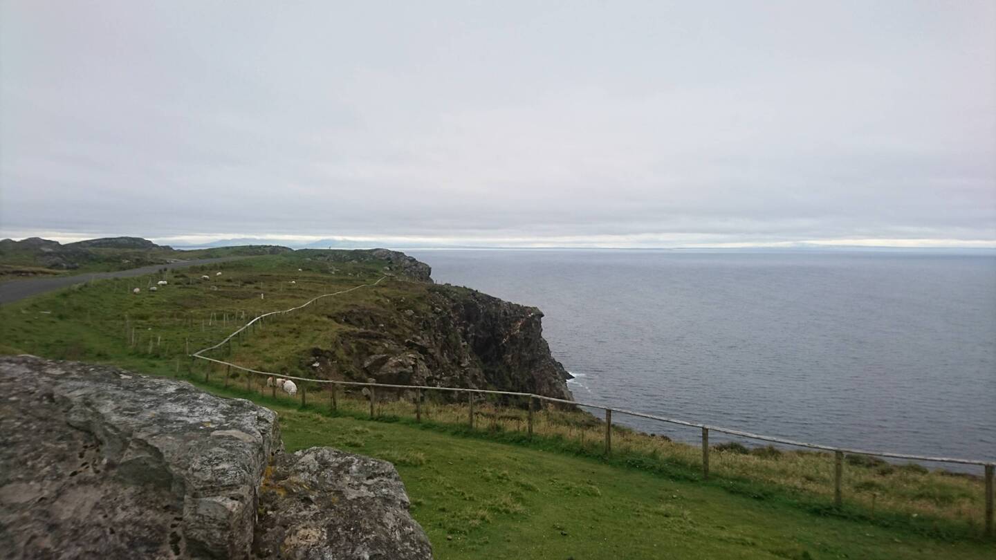 Morgens starten wir früh in Richtung der Fähre von Cairnryan/Schottland nach Larne/Nordirland. Im Gegensatz zu gestern ist der Himmel grau und es beginnt zu regnen. Nebelschwaden ziehen an den Bergen entlang, über dem Meer liegt eine weiße Suppe.