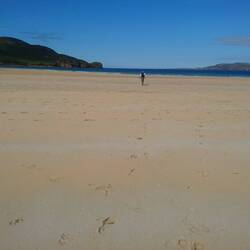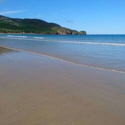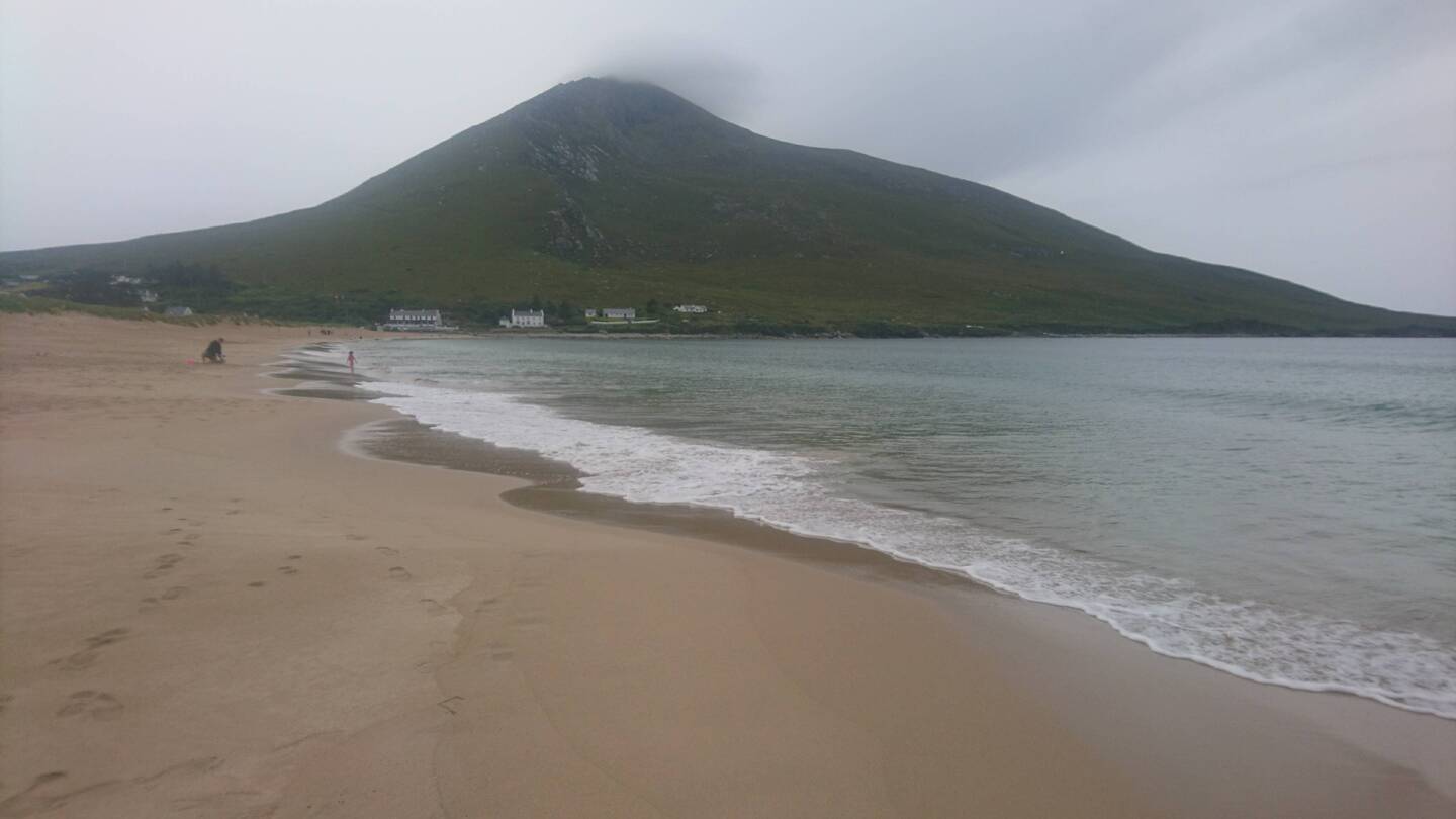 .und schon bin ich im Gespräch mit einem netten Niederländer, der vor einigen Jahren aus der Gegend von Venlo zusammen mit seiner Frau nach Donegal ausgewandert ist und sich hier sehr wohl fühlt. " i' m in love with this country." erzählt er mir und dass er Jäger ist. Haupsächlich jagt er Hirsche, von denen es hier viele gibt. Er gehört zu einem irischen Jagdclub, aber am liebsten geht er allein jagen. In seinem roten Berlingo sitzt ein hübscher Springerspaniel, den er gerade zum Jagdhund ausbildet. Außerdem besitzt er noch einen Germany Pointer, den er mit zur Jagd nimmt. Der Spaniel heißt Max, nach Max Verstappen, dem Rennfahrer, und ist auch genauso schnell, erzählt er. Ich frage ihn, wie er es schafft, einen erlegten Hirsch zu transpotiieren. Er erzählt mir, dass er immer einen Bauern findet, der ihm hilft und dann teilen sie das Fleisch. Wir verabschieden uns freundlich voneinander und dann fahren Andreas und ich weiter an der Küste entlang und halten an einer langen sandigen Bucht. Es ist gerade Ebbe und wir machen einen Spaziergang bis zur Wasserlinie, rechts und links grüne Hügel, weiße Häuschen und Felsen, Wolkenschatten ziehen über den Strand. Wir genießen die Sonne und die frische Luft. Auf dem Rückweg kommt uns ein alter Herr mit blauer Schirmmütze entgegen. "Isn't it lovely? If you See this beauty, you forget all the rain." ich kann ihm nur zustimmen, genauso ist es: diese wilde Landschaft bei Sonnenschein berührt das Herz.Читать далее