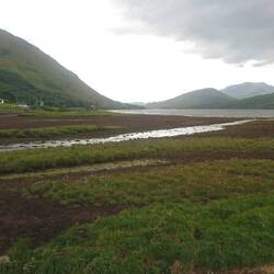 Anschließend fahren wir die Coastal Road zu unserem Campingplatz Watertop Farm und die Straße führt tatsächlich immer am Wasser entlang und führt schließlich an der Küstenbergkette auf atemberaubend schönen, aber schmalen Sträßchen hoch über dem Meer entlang. Der Weg ist gesäumt von blühenden Fuchsienhecken, trotz Regen wunderschön. Unser Campingplatz liegt, wie der Name achon sagt, oben auf dem Berg. Nebelschwaden wabern,feiner Nieselregen fällt, als wir ankommen. Ich bin froh, dass Andreas das Auto zum Schlafen ausgebaut hat, falls es so bleibt. Nach einer heißen Thaisuppe aus unserem Vorrat entschließen wir uns, doch das Zelt aufzubauen, weil der Regen sich verzogen hat. Gegen die Midges, kleine beißende Mücken, hilft uns der Akku- Ventilator, den Andreas mitgenommen hat. Wind mögen die kleinen Biester nicht. Irgendwann kommt sogar die Abendsonne heraus und erleuchtet sanft die Landschaft. Jetzt freuen wir uns auf das, was hier zu entdecken ist....Читать далее