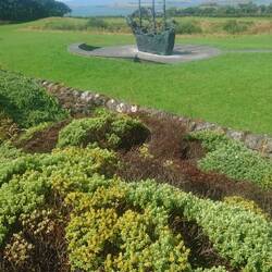 Nach dem Frühstück fahren wir trotz Nieselregens zur kleinen Fähre, die von Glengariff nach Garinish Island geht. Das ist eine 15 hä große Insel, auf der eine Familie nach Plänen des englischen Architekten und Gartenbauers Harald Peto einen Garten mit vielen Pflanzen und Bäumen exotischer Herrkunft gestaltet hat. Es gibt einen italienischen und einen griechischen Gartenteil, einen Wehrturm aus napoleonischer Zeit und viele verwunschene Wege. Wir staunen über 2 m große Baumfarne und Rhododendronbüsche mit riesigen Blättern, die aus dem Himalaja stammen. Immer wieder bezaubern uns Ausblicke auf Meer und Biuchten, sowie benachbarte Inselchen. Auf den vorgelagerten Felsen ruhen sich Seehunde mit ihren Jungen aus, die noch ein helles Fell haben.