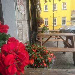 Wir haben uns mit Lucas in Clonakilty verabredet und sind erstaunt, ein quirliges Städtchen mit vielen kleinen Läden und Pubs vorzufinden. Wir bummeln und genießen einen Aperol in der Sonne, zum ersten Mal im T-Shirt statt im dicken Pullover. Die Toilette der Bar ist so kitschig-schön gestaltet, das ist mir ein Foto wert... Dann trifft Lucas ein und erzählt, dass er morgens beim Schwimmen im Meer Delfine gesehen hat.
