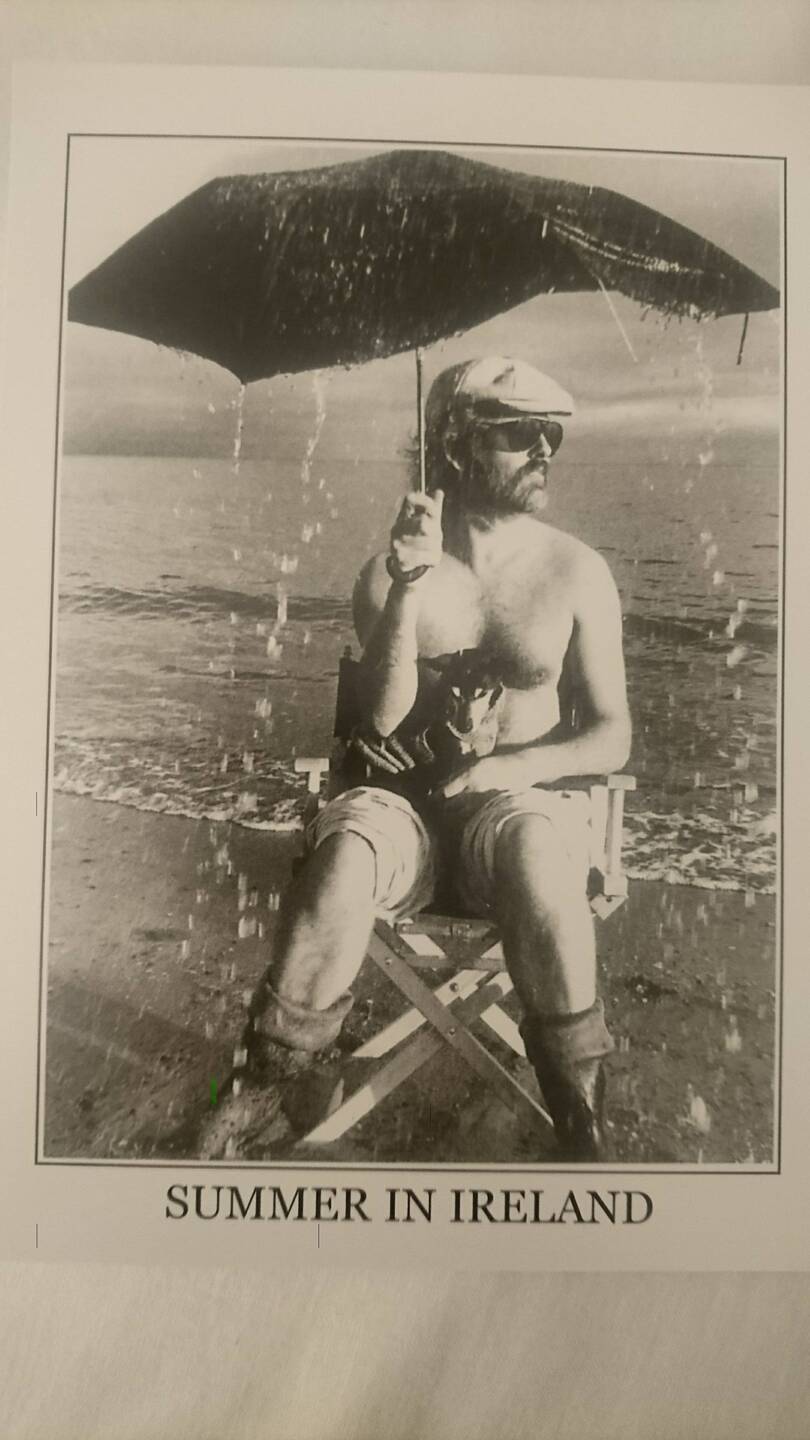 Heute empfängt uns wieder der schon vertraute Sprühregen, als wir das Hotel verlassen. Ich habe mir neulich in Westport die passende Ansichtskarte gekauft, man kann das Wetter nur mit Humor nehmen, sonst macht man sich unglücklich.