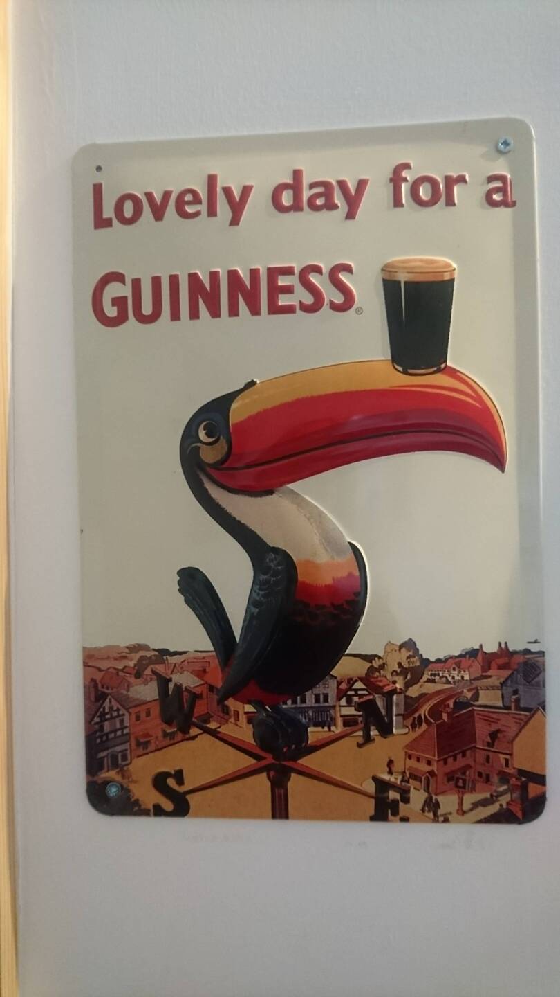 Heute wachen wir vom Prasseln des Regens auf unsere Dachfenster auf. Der National Weather Forecast verheißt nichts Gutes: heftige Regenfälle und Sturm mit Überflutungsgefahr an der Westküste Irlands. Wir lassen es ruhig angehen, nutzen die Zeit zum Lesen und Schreiben...vielleicht hellt es sich noch auf...Gegen Mittag ist klar: Das wird nichts. So fahren wir erstmal zum Tesco und füllen unsere Essensvorräte auf. Danach haben wir die Hoffnung, zumindest einen Strandspaziergang machen zu können, kehren aber erstmal in eine Bar ein, weil es wieder heftig regnet: A lovely day for a Guinness... Drinnen brennt im Kaminofen ein Torffeuer, an der Theke wird munter geschwatzt.
