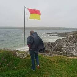 In Blacksod angekommen, sehen wir einen kleinen Hafen mit Leuchtturm. Zu Beginn des 20. Jahrhunderts befand sich hier eine Walfangstation, die von Iren und Norwegern gemeinsam betrieben wurde. Heute kann man in einem kleinen Büdchen Tickets für eine Whalewatching-Tour buchen. Wale und Delfine gibt es häufiger im Atlantik vor der irischen Küste zu sehen.