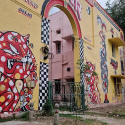 Hinfahrt in einem luftigen dreirädrigen yellow cap moped. Durchfahren der Streetartgalerie ganz in der nähe unseres Colonialstil Hotels.