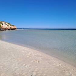 Staying at Bruboodjoo, an aboriginal community campground about 30 klm north of Coral Bay. On the way, we stopped at Bullara Station for coffee and were very impressed with their camp grounds and cafe, etc. When we got to Brubodjoo, we were disappointed with the lack of facilities for the price, which was more than Bullara. Day 1 was lovely, and we explored the beach and found a beach that was secluded, and the dogs could run for miles. After that, it all went downhill, with the weather turning blustery and horrible. The wind was intense and made it impossible to even get out of the van except early in the morning and late afternoon. Our plans of fishing and kayaking went by the way. We did a day trip to Coral Bay 🪸. This is a small town with nothing much to offer except a beautiful beach that dogs can't go on. Lovely views from a close cliff, and that was about it.Leia mais