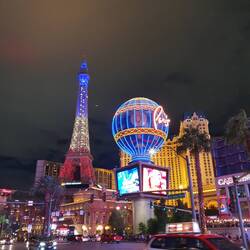 Abends sieht alles nochmal ganz anders aus. Diese ganzen Lichter unbeschreiblich. Absolutes Muss ist die Soringbrunnenshow vom Bellagio. Auch die Vulkanshow des Mirages kann sich sehen lassen.