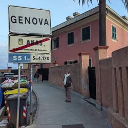 Dem Lago Maggiore entlang, am Alessandria vorbei, durch die Hügel vor der ligurischen Küste landen wir in Arenzano, etwas westlich von Genua. Das Wetter ist milder und sonnig. Wir genießen dieLæs mere