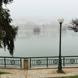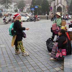 Ich bekomme ein paar warme Socken, denn zum ersten Mal auf all meinen Reisen habe ich mich diesbezüglich verkalkuliert. Die katholische Kirche ist geschlossen, zum Glück! Bei den Massen an Touristen wäre alles nur laut und voller Leute. Wir finden den Nebeneingang und sind allein. Der Ho Sa Pa ist die Alster der Stadt und sieht sicher gut aus, wenn der Nebel nicht wäre. Wir haben gestern hier in der Nähe gegessen und waren erstaunt, welchen positiven Eindruck die vielen Leuchtreklamen vermitteln. Bei Tageslicht ist es eine geschäftstüchtige asiatische Stadt. Zufällig finden wir das Gecko-Restaurant und es gibt Tiramisu. Überhaupt fällt auf, dass dieses Restaurant ausschließlich von Europäern besucht wird: Backpacker, Ausflügler aus Hanoi oder kleinere Gruppen. Sie stellen zwar eine Minderheit der Touristen dar, sind aber nicht zu übersehen. Überhaupt sind tagsüber viele Touristen in, der Gegend unterwegs. Viele wandern, andere werden zu den Punkten am Fansipan (3143 m) gebracht oder fahren mit der längsten Zahnradbahn Vietnams zur ersten Haltestelle. Neben einem Zen-Kloster und Restaurants sowie Einkaufsmöglichkeiten findet sich hier der Beginn der steilsten Seilbahn der Welt (überwindet 1410 Höhenmeter) zum Gipfel. Weil man am Gipfel dem Himmel am nächsten ist, gibt es hier weitere buddhistische Heiligtümer und Kommerz. Die große Buddha-Staue enthält echte Reliquien, die aus Myanmar kommen. Eine sehr große Stupa zur Ahnenverehrung mit 11 Etagen rundet den Komplex ab. Auch den höchsten Flaggenmast Vietnams kann man bestaunen. Aus französischer Zeit ist der Wetterbeobachtungsturm erwähnenswert.