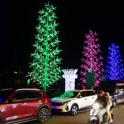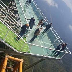 Ca 100 km vor unserem heutigen Ziel machen wir nochmal Pause. Mir fällt auf, dass es Reisfelder gibt, die brach liegen. Erst am Zielort wird mir klar, dass der Tourismus und die nahe Hauptstadt sich bis hier auswirkt. Durch das Verkaufen von Souveniers auf der Straße lässt oder Industriearbeit lässt sich leichter Geld verdienen als mit dem Reisanbau. Doch vor dem Ziel müssen wir nochmals über die Berge. In über 2000 m durchstoßen wir die Wolkendecke zum Dach Indochinas mit über 3000 m und es wird kalt. Den Skywalk nehme ich zunächst garnicht war, hingegen ist der Tempel von weitem sichtbar. Neben den Hotels auf der Höhe ist die vergoldete Buddha-Statue imposant und ich nehme mir als einziger einen Stop heraus, um sie zu fotografieren. Bei der Abfahrt wird es noch kälter und feuchter. Und dann trifft uns der Schlag. Unvermittelt sind wir im Monte Carlo von Vietnam. Alle Straßen dieser Stadt mit 30 000 Einwohnern und 100 000 Gästen sind von 0 bis 24 Uhr verstopft. Doch dazu morgen mehr.Read more
