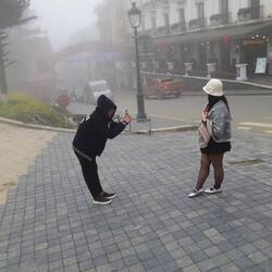 Für die Franzosen, die diese Stadt 1922 hier im hochalpinen Land gebaut haben, war sie ein Erholungsort. Heute ist sie nur die kälteste Stadt Vietnams und bekannt für den Nieselregen und Nebel. Nur selten im Jahr klettert das Thermometer über 20 grad und bei den wenigen Sonnentagen müssen die Sehenswürdigkeiten gesperrt werden, damit man Werbeaufnahmen machen kann. Diese sind dann auch farbenfroh und schön und locken noch mehr Touristen an. Inzwischen kommen auf jeden Einheimischen täglich etwa 100 Touristen, mehr als in St. Tropez oder anderswo. Die Infrastruktur ist an ihre Grenzen gelangt, Straßen verstopft, Bürgersteige abgesackt, Bauten heruntergekommen. Touristen kommen zu hunderten aus Malaysia, Indonesien, Philippinen oder Taiwan. Naturgemäß ist das Foto mit irgendwas im Hintergrund wichtiger als der Grund des Hierseins. Man war auf dem Dach Indochinas!