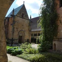 Ebenfalls im Kreuzgang befindet sich die gotische Annenkapelle. Im Kreuzgang sollen sich derzeit auch junge Uhus aufhalten, ein Uhupärchen brütet hier seit einigen Jahren. Leider haben die sich heute gut vor uns versteckt.