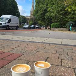 Übernachtet haben wir auf einem Park & Ride am Stadtrand von Bath. Entsprechend sporadisch war unser Frühstück, aber zur Freude von Kathleen schon im Sonnenschein. Anschließend wechselten wir zuLæs mere