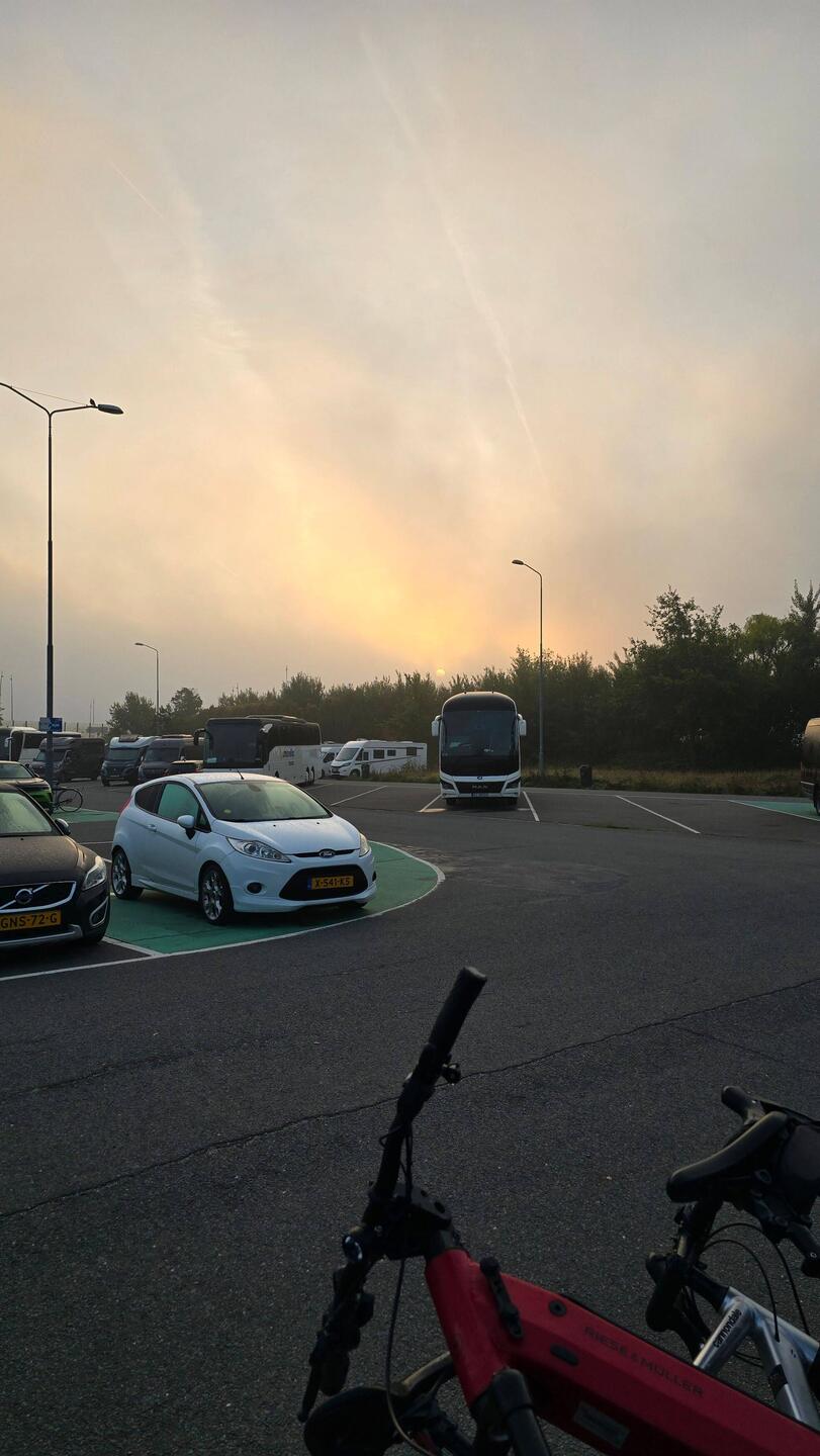 Erster Trip nach Calais, wo wir über Nacht stehen. Damit wir am Nächsten Tag früh auf die Fähre kommen.